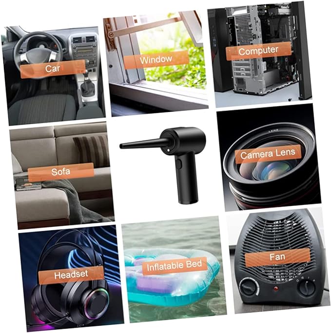 - π¨ Electric Air Blower: This compressed air duster is a versatile tool that effectively cleans all particles or stubborn debris from keyboards, USB ports, windowsills, decorations, air conditioners, refrigerator and freezer vents, and any hard-to-reach areas.